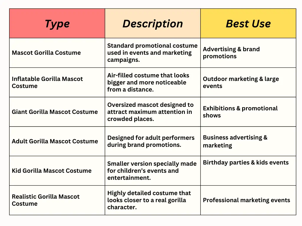 Types of Gorilla Mascot Costumes